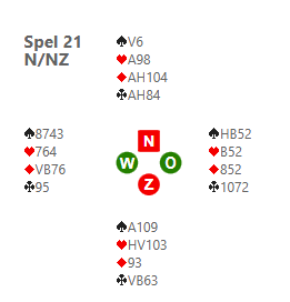 Met ons eerste spel (21) eindigden de meeste NZ-paren in 6SA, een acceptabel maar niet een goed slam.