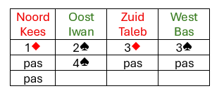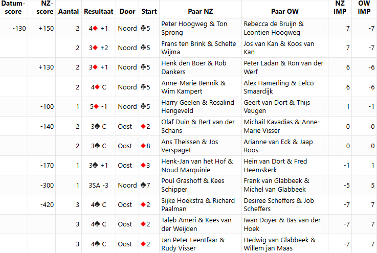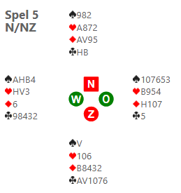 Na de 1 Oost maakte zijn contract na de uitkomst van Op andere tafels was NZ moediger (of OW minder moedig) en bereikte NZ wel Opvallend: geen enkele tafel zat in het absolute parcontract van 5 Scorestaat: